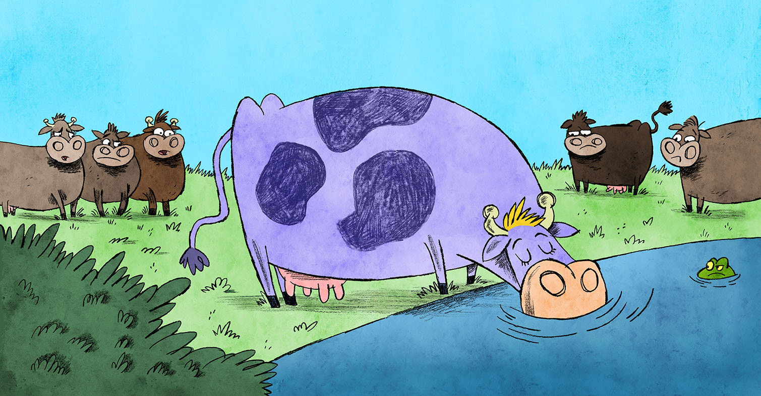 Illustrations from Maevis the Purple Cow, written by Megan Park and published by Lucky Rabbit Publishing.